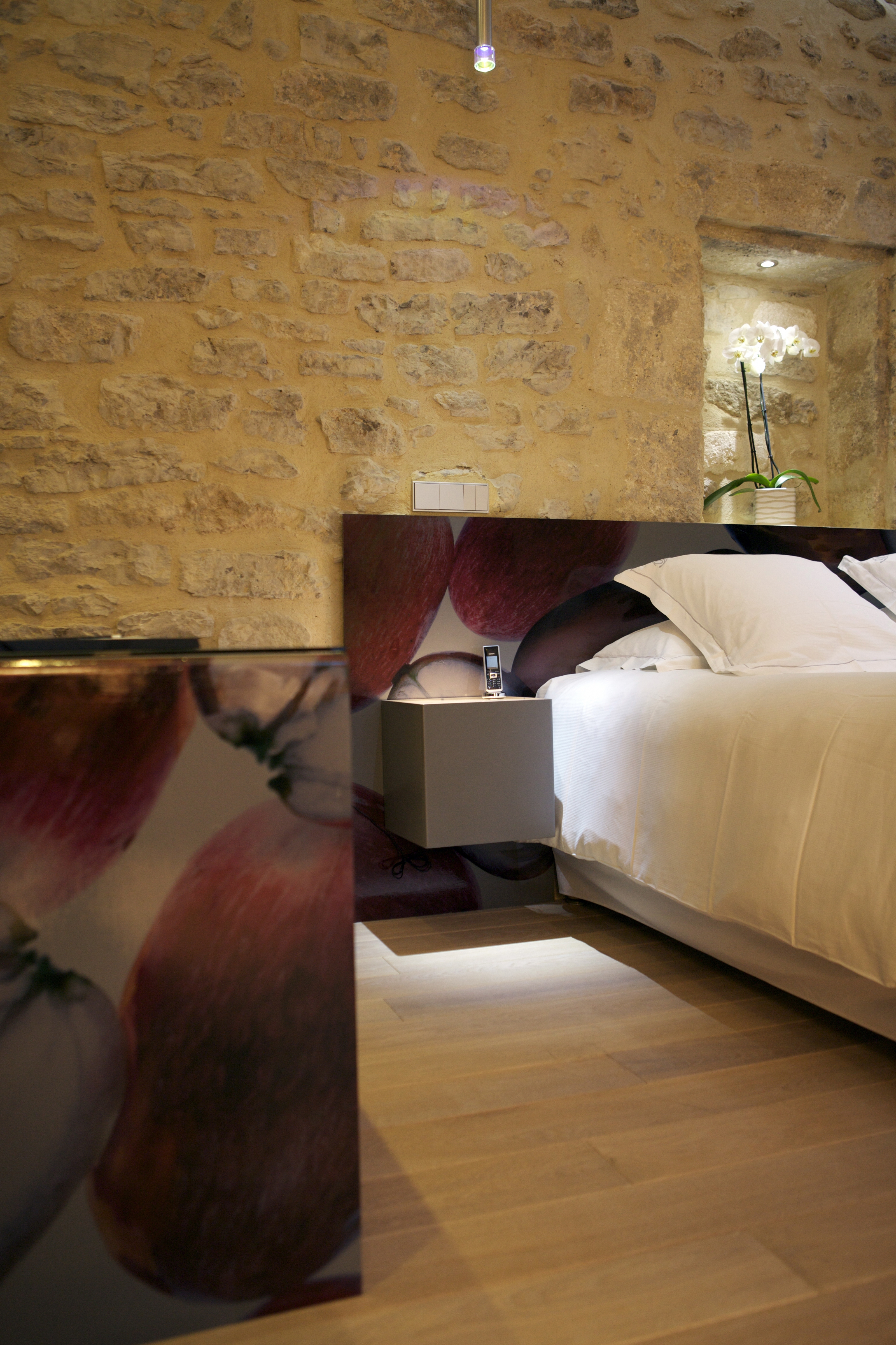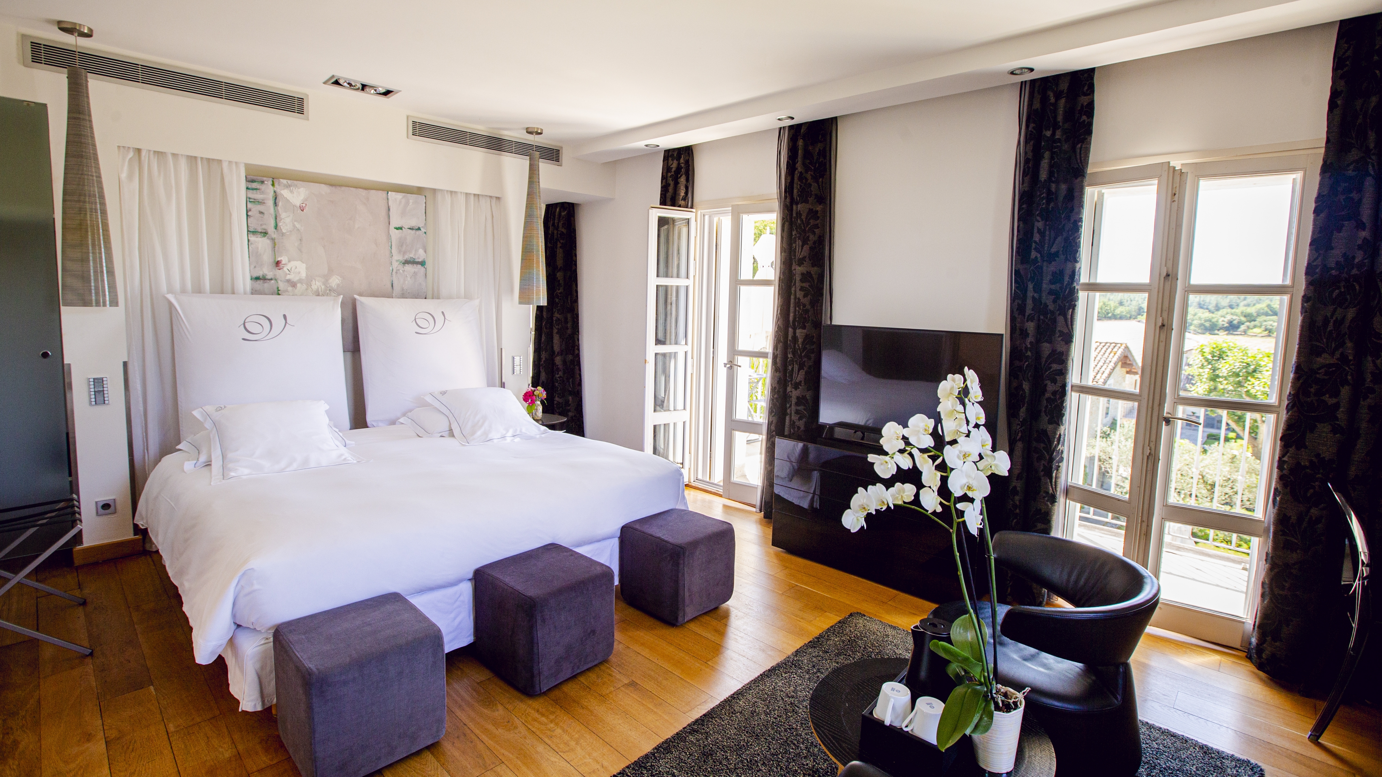 A 5* hotel with 26 rooms and contemporary furnishings and decor, a gourmet restaurant and brasserie in the vineyards, a 2000m² Spa and a KOS, Valmont and Biologique recherche treatment menu.