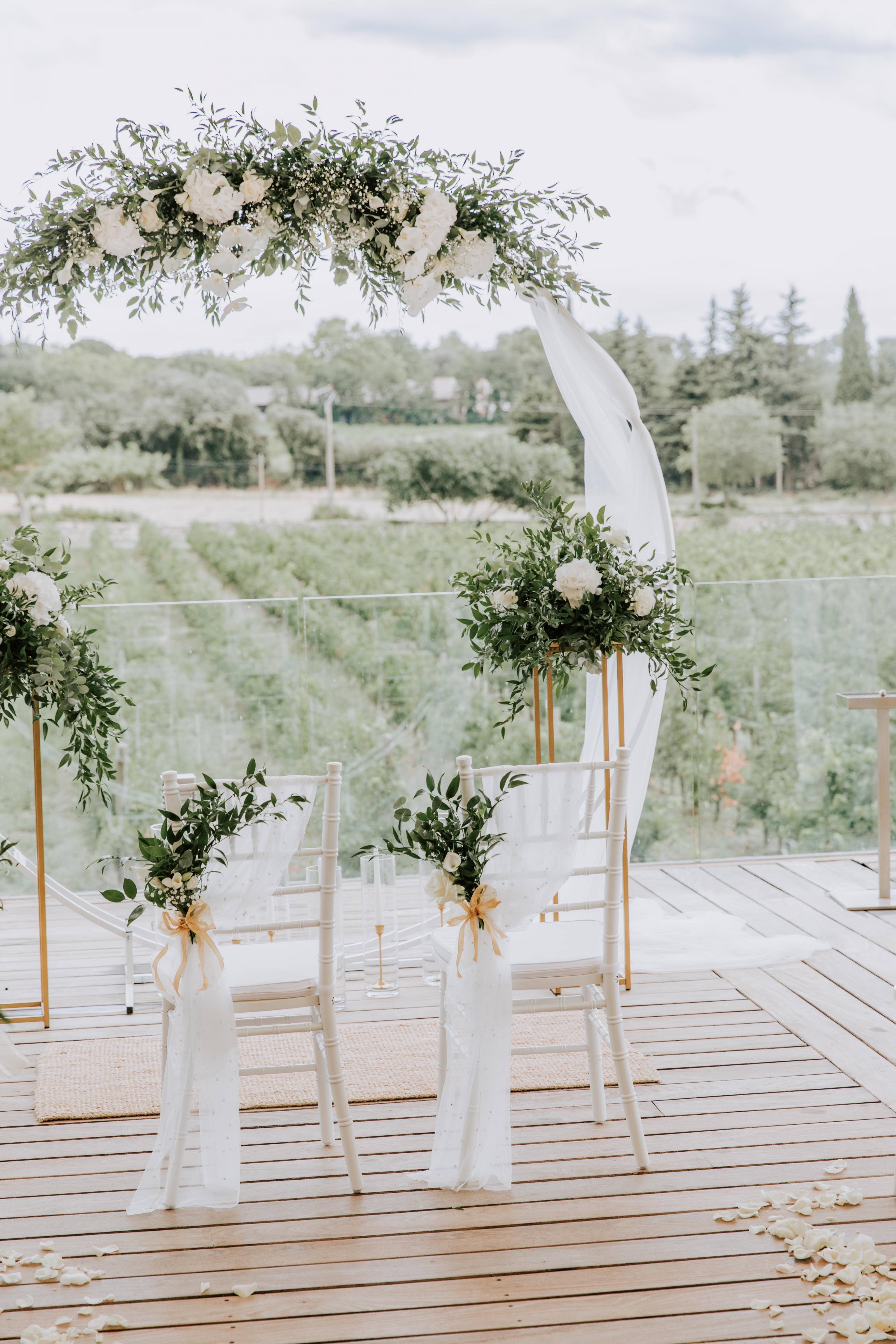 De plus, la terrasse attenante de 200 m² couverte par son chapiteau cristal surplombant notre vignoble sera propice à la réalisation du mariage de vos rêves.